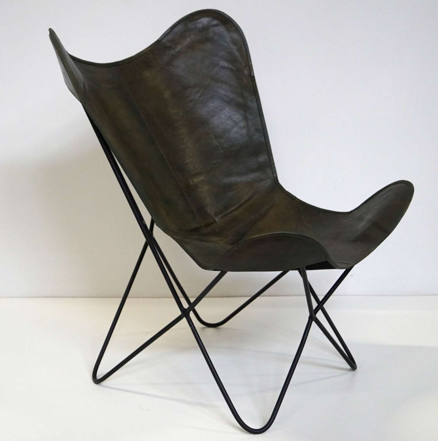 Er du til minimalisme og stilfuld indretning er her et godt bud på en loungestol med et næsten skulpturelt udseende. Denne Bohemian loungestol er en fryd for øjet, og et smukt blikfang i din indretning. Loungestolen bliver leveret i to dele. Understellet er fremstillet i sortmalet jern og er med små synlige svejsninger. Læderbetrækket er i lækker antik grøn farve og kommer i separat æske lige til at pakke ud og sætte på understellet. Hvis du ønsker at pifte loungestolen lidt op, kan de med fordel lægge et blødt lammeskind i stolen. Det giver både hygge og varme. Loungestolen er både åben og omfavnende i dens design, og passer således perfekt ind i den rummelige entré, hyggehjørnet eller som supplement omkring sofabordet. Stolen fås i forskellige farvevarianter, og dem kan du finde i shoppen.