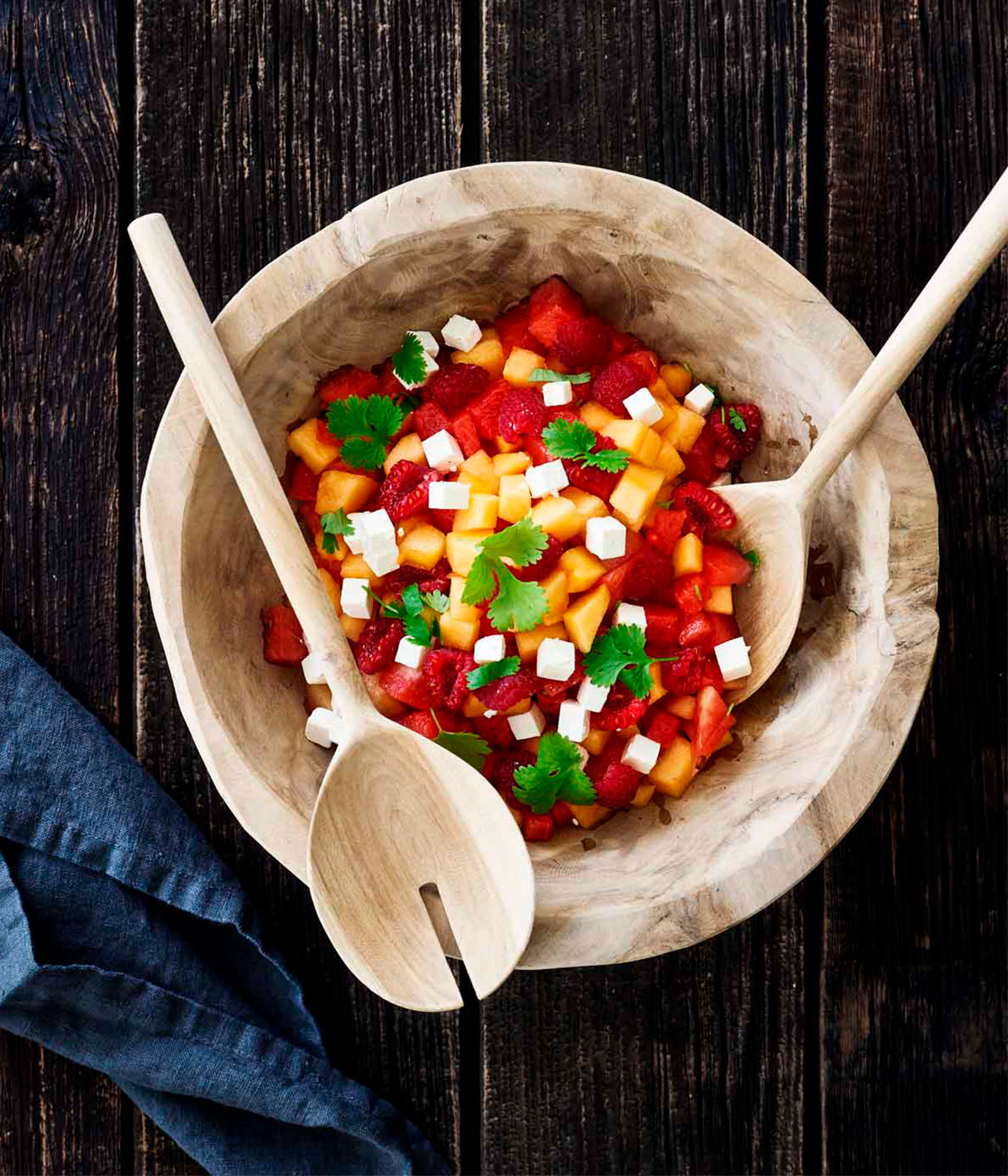 Dette håndlavede salatsæt i teak passer perfekt sammen med en af vores mange salatskåle. Hver enkelt del er unik, og farve, struktur samt naturlige variationer i træet gør, at der kan forekomme mindre revner eller sprækker – et kendetegn ved naturmaterialer.