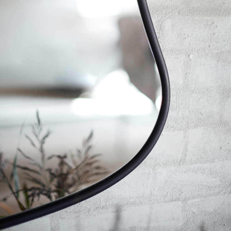 Michigan vægspejl er inspireret af storbyens pulserende bevægelser og kombinerer organiske former med en klassisk metalramme. Den sorte ramme giver et industrielt præg, mens de bløde, flydende former tilføjer liv og dynamik til indretningen.